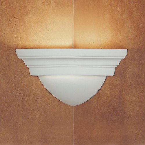 | Shown as UnfinishedOptional finishes available belowBulb not included Title 24 Energy Star American-made paintable ceramic wall sconce Standard lamping: 1-60W Candelabra Base Green product Made in USA 11.5 in. L x 8 in. W x 6.5 in. H Majorca's crowning cornice sets off the closed bowl below, for a traditional look. This handsome corner sconce provides generous up-light, enhanced by a gleaming band around the middle. Majorca coordinates with the Majorca Wall Sconces and Pendant and the Minorca Wall Sconce. Add any of our optional finishes, and the possibilities are amazing. ...Read more |
